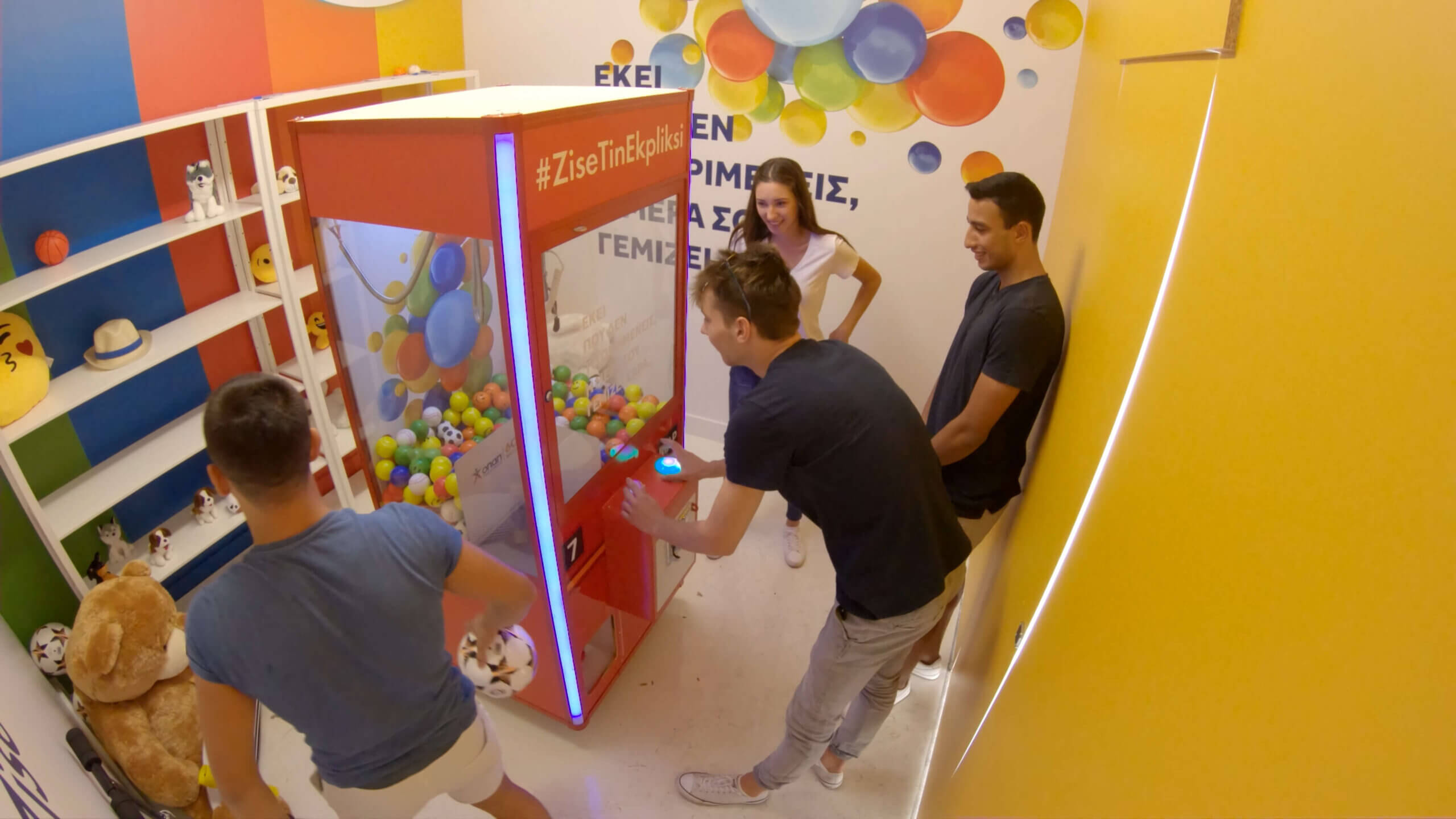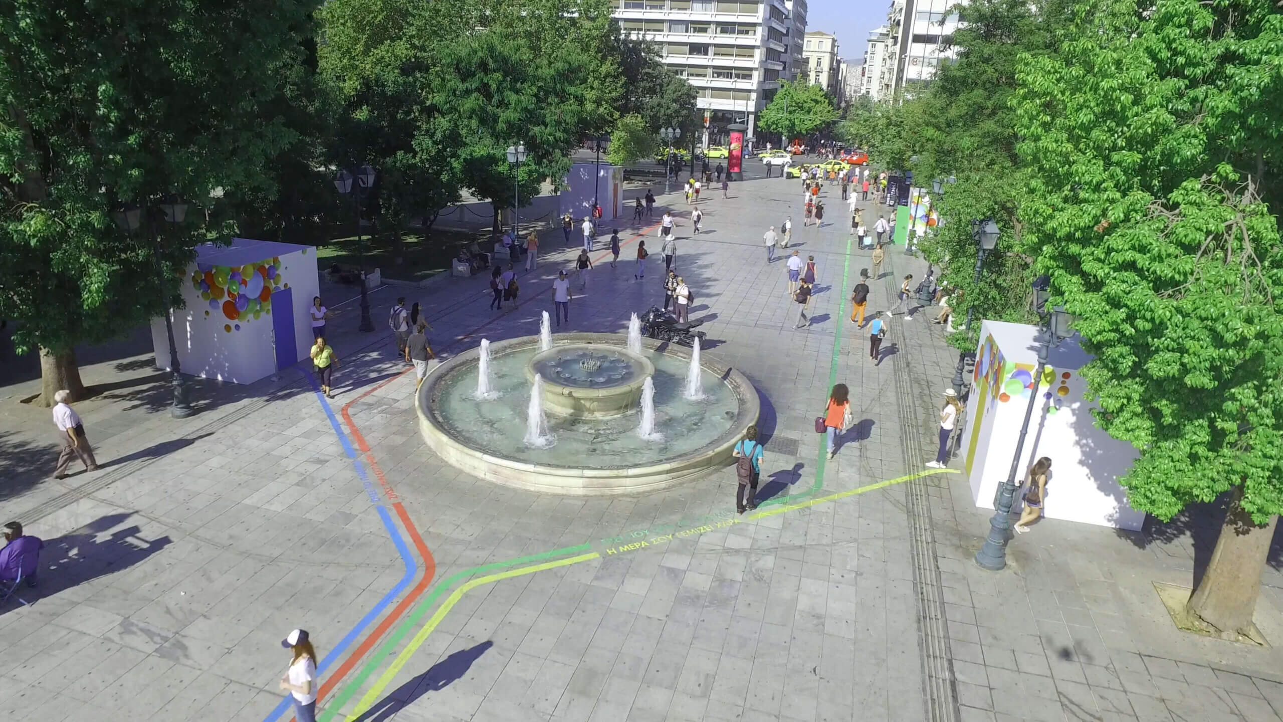 For the Mr.OPAP campaign launch with key message «Εκεί που δεν το περιμένεις, η μέρα σου γεμίζει χαρά» we created a holistic concept of unique experiences that gave a twist in consumers’ everyday life. We drew our inspiration from Alice’s strange journey in Wonderland when she saw the white rabbit and decided to follow him down his rabbit hole, to create colourful paths baring campaign related call to action messages, that lead to memorable, exciting experiences. 4 colourful lines located outside Syntagma square metro station which ended up to 4 different surprise boxes. A sweet ticket to happiness, a cloud paradise, a travel down childhood lane, a VR walk on the edge of a skyscraper surprised all participants and filled them with joy when they least expected it.